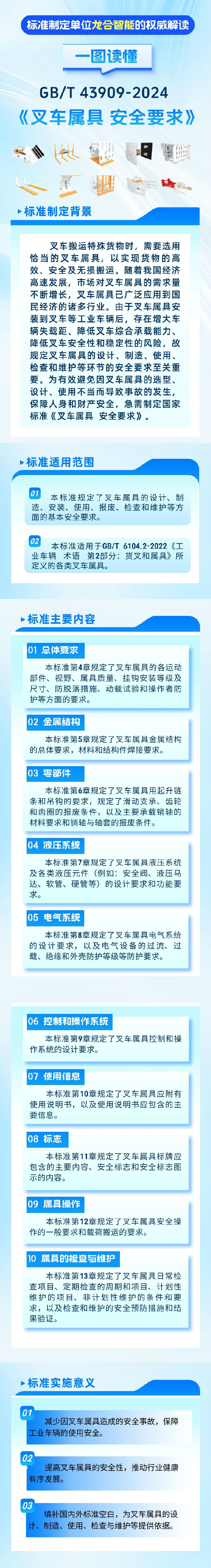 龍合智能裝備制造有限公司自2017年3月開(kāi)始擔(dān)任屬具工作組組長(zhǎng)單位以來(lái),在上級(jí)標(biāo)委會(huì)的指導(dǎo)下、在全體組員的共同努力下,卓有成效地開(kāi)展了許多工作,為促進(jìn)我國(guó)工業(yè)車(chē)輛標(biāo)準(zhǔn)體系建設(shè)和促進(jìn)行業(yè)整體技術(shù)進(jìn)步做出了積極貢獻(xiàn)。截至目前,我國(guó)工業(yè)車(chē)輛屬具專(zhuān)業(yè)領(lǐng)域共有現(xiàn)行有效標(biāo)準(zhǔn)20項(xiàng)(其中國(guó)家標(biāo)準(zhǔn)3項(xiàng),行業(yè)標(biāo)準(zhǔn)17項(xiàng));已完成報(bào)批待批準(zhǔn)的行業(yè)標(biāo)準(zhǔn)7項(xiàng);在研的屬具標(biāo)準(zhǔn)制修訂計(jì)劃項(xiàng)目共8項(xiàng)(其中國(guó)家標(biāo)準(zhǔn)2項(xiàng)、行業(yè)標(biāo)準(zhǔn)6項(xiàng))。